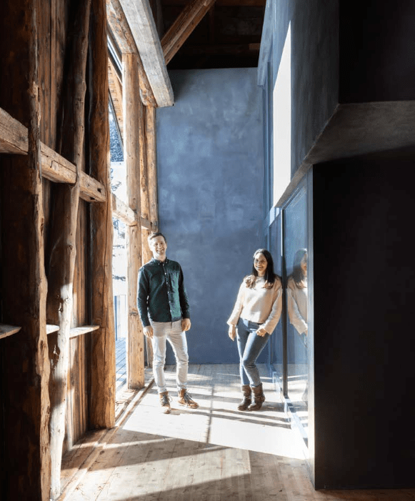 Wir sind eine junge Familie aus Valbella. Mit dem Umbau des Stalls haben wir unseren Traum verwirklicht. Die Erhaltung des alten Gebäudes war für uns zentral. Wir liessen die Aussenhülle komplett unberührt und integrierten den Wohnraum in einer neuen Form in das Innere des 100 Jahren alten Stalls.